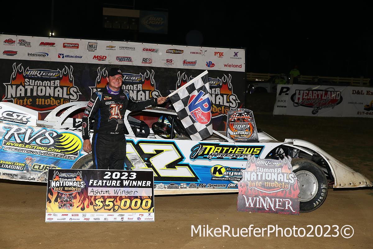Winger, 23, of Senoia, GA, is in hot pursuit of his first DIRTcar Summer Nationals championship this year, aiming to compete in every race on the 38th annual Hell Tour calendar. Since his first win of the summer one week ago at Davenport Speedway, Winger has finished on the podium in every Feature except one and extended that streak Wednesday with his eighth career Summer Nationals Feature win.
